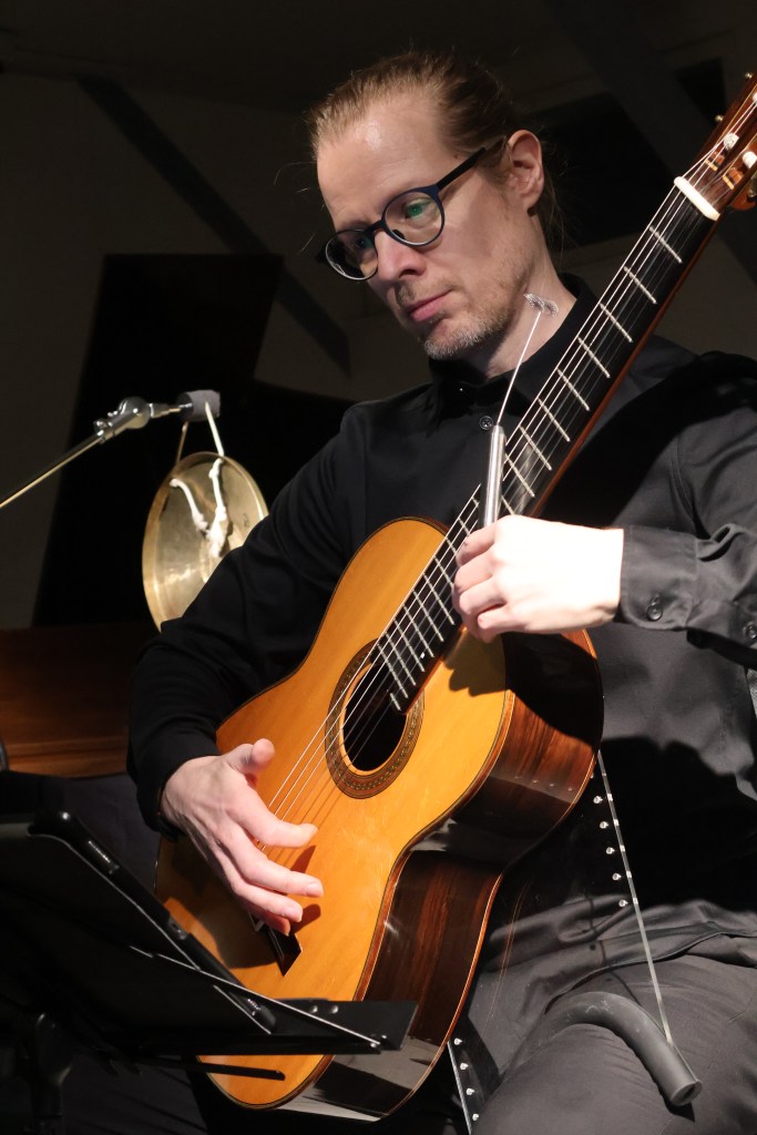 Kaaos Ensemble is a new music quartet whose rare combination of instruments, flute, saxophone, guitar and percussion instruments, offers versatile sonorous possibilities. The group consists of four top Finnish musicians, who are united by their interest in working as versatile and active musicians, as well as expanding their own professional skills, especially in contemporary music. The idea to found the band arose from the desire to get to know the music composed for this particular combination of instruments in Finland in the 1970s and 1980s, and to bring these works to the fore again.